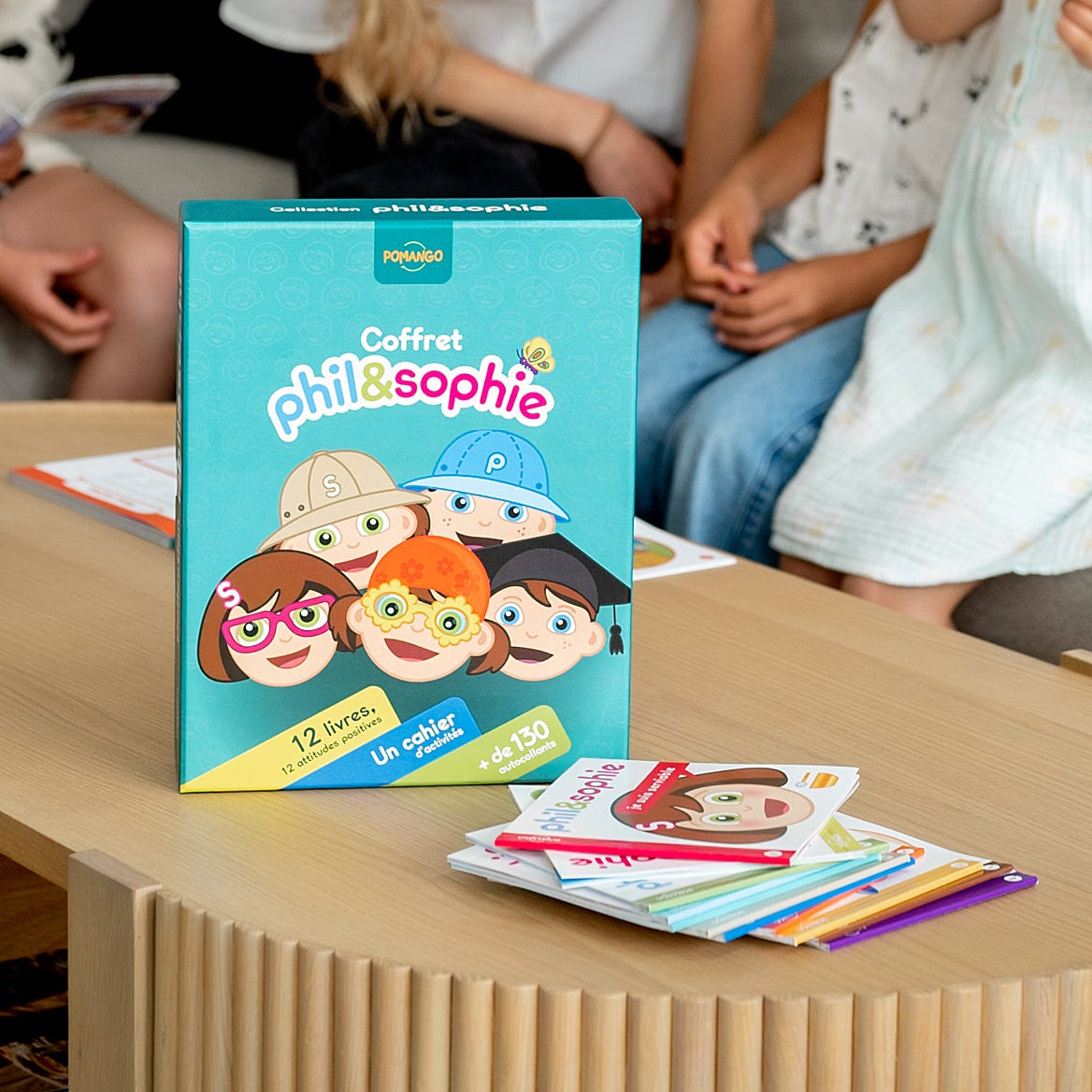 The Growing Up with Phil and Sophie de Fablus collection is a series of french books of around thirty pages intended for children from 3 to 7 years old. Aiming to encourage children to cultivate happiness by adopting beautiful attitudes such as courage, optimism, patience, etc.